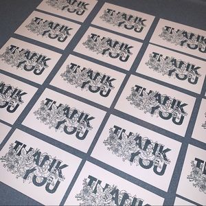 NEW! Hand stamped by me. Speckled/dotted look to the letters. Each card is slightly different! Ink doesn’t always transfer perfectly or identical. You will receive 20 small cards. Blank on the other side. Not a folded card. small flaws possible but are brand new. Couple rough spots around edges