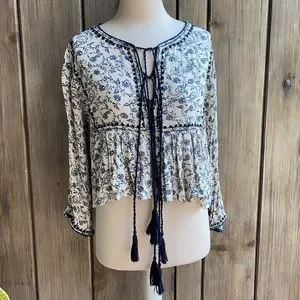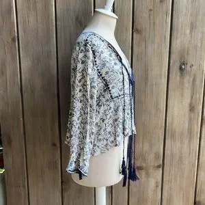 Brand: Zara Premium Denim Collection with Tassel tie neckline loose crop top blouse
