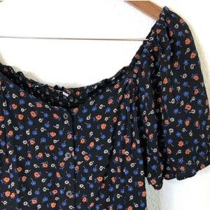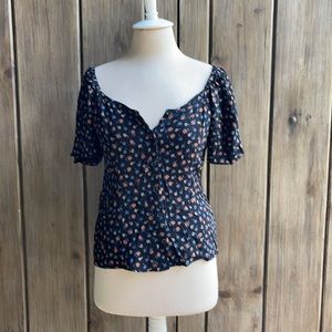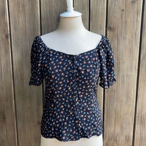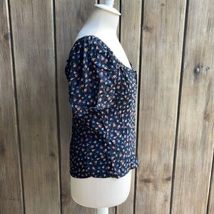 Madewell top - seamed square neck, buttons up front in Prairie Posies pattern.
