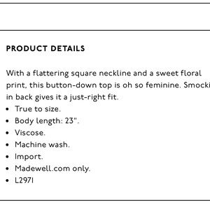 Madewell • square neck Prairie Posies smocked top