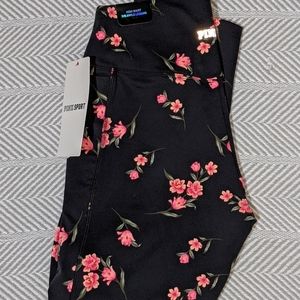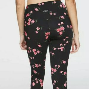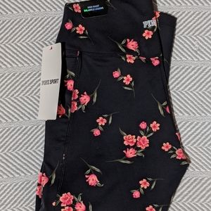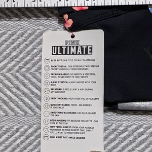 NWT Victoria's Secret PINK ULTIMATE V 7/8 Ankle Leggings Women's Medium (please see pictures for measurements 14.25" on waist and 12" in on top of high waist)for relaxing in comfort Yoga or any Athletic sport or activity Activewear black and pink flowers floral 3 pockets 2 large pockets each side 1 inside.. (see pics fits Google Pixel XL with case) High waist breathable sweat wicking 4-way stretch fabric 7/8 ankle leggings reflective logo Active wear