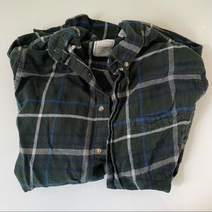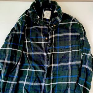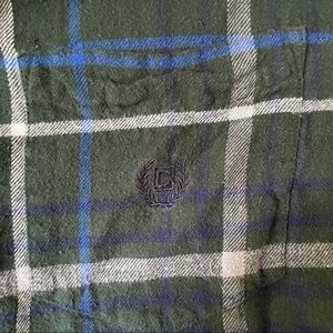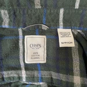 Chaps Men’s Small Green/Blue/White flannel shirt. Embroidered Logo on left chest pocket. Nice wood styled buttons