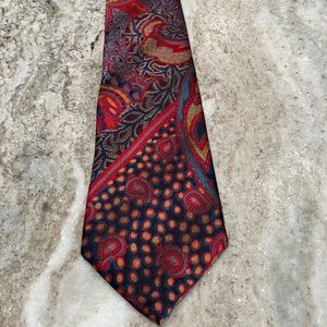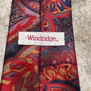 Men’s windridge neck tie. Red paisley print, 100% polyester.