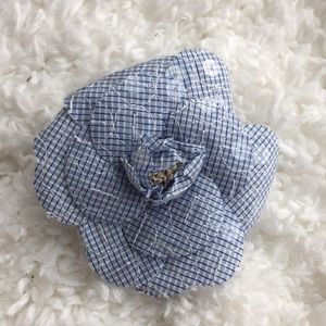 Chanel Blue Sequin Gingham Camellia Brooch Vintage