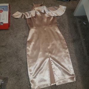 Sheath dress, rose gold silk.