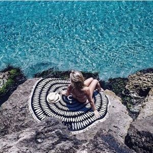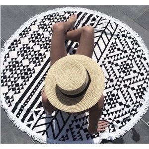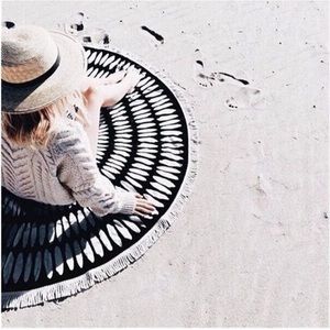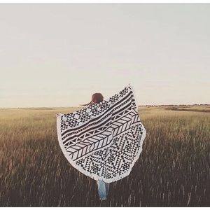 Super adorable indie/bohemian/mandala/hippie cloth! Features Aztec-inspired geometric white/black pattern & fine line details. Use as quick dry beach/pool towel, bedspread/blanket, picnic/yoga mat, etc.