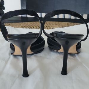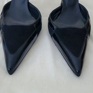 VERSACE Black Leather /Suede Pointed Toe Mules with Sling Back.