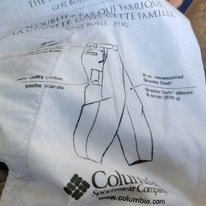 Columbia women's size 10 short tan pants. Zip closed security pocket. side utility pocket. Made out of 8 oz Stone washed granite cloth. 31 in waist 27-in inseam.