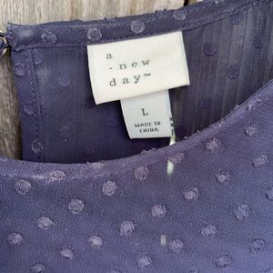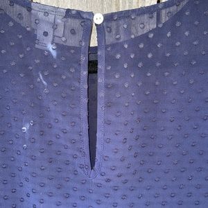 Cute and fashionable Dotted Swiss on this blue and breezy top!