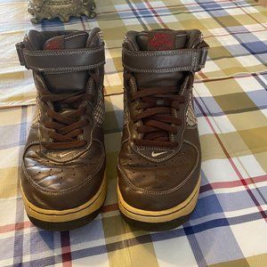 Nike Air Men's Brown Running Shoes With Ankle Strap Size 12. Condition is Used has a few marks Please see Pictures.