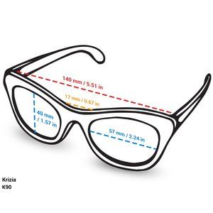 Temple-to-temple width: 140 mm / 5 1/2 in