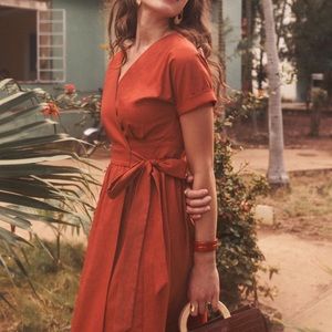 Sezane Red Midi Linen Wrap Dress NWT