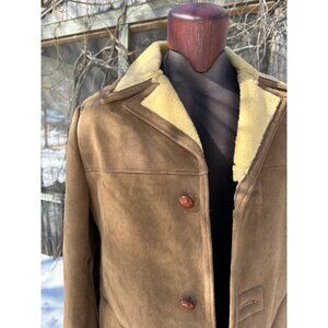 60s 1960s Rancher Brown Shearling & Suede Coat Sheepskin Lambswool Vintage Sz 42