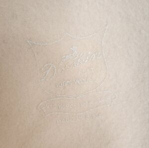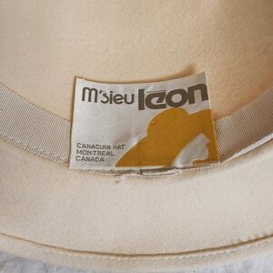 Vintage late 60s early 70s, Made in Canada, 'Doeskin' Felted Wool Imported from USA, silver trimmed feathers, faux Pearl Hat Pin (added by me), Outside Circumference-32, Inside Circumference-22.