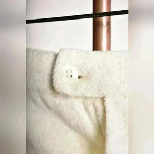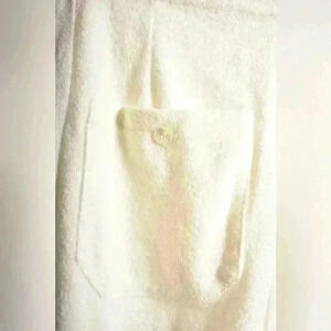 A very fine, and little known 1960s designer, Gino Paoli of Italy produced some excellent quality garments. Presented is this pair of white acrylic terrycloth flared pants, size 26", made in Italy in the 1960s. Features mother of pearl buttons and a flexible fabric - perfect for the summer.