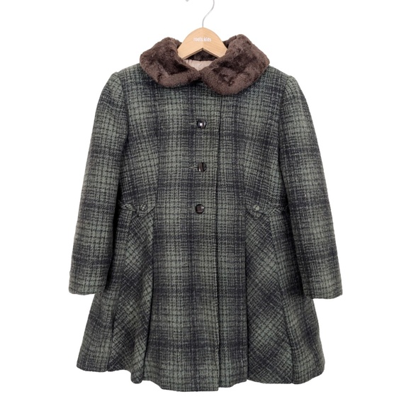 60s Kids Tweed Peacoat Jacket Fur Trim Collar A-Line Shell