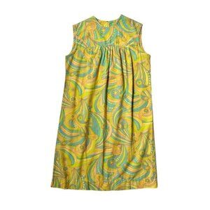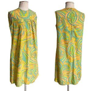 60s Psychedelic Mini Tent Dress Cotton Relaxed Mod Gogo Pastel Daisy Paisley.