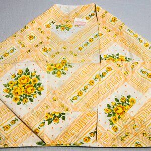 60s Yellow Roses Bouquet Pillowcase -SINGLE- Vintage Muslin Fabric Bedding