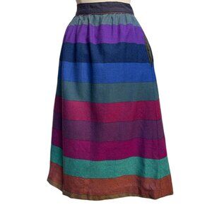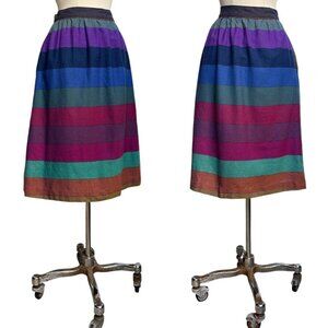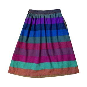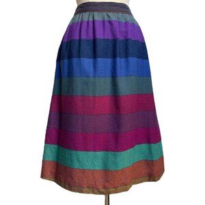 60s vintage rainbow wool skirt multicolour stripe pattern high waisted flared.