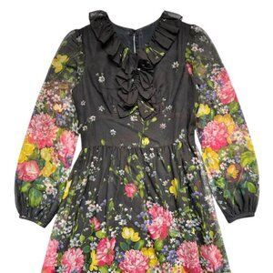 60s vintage ruffle flower dress long sheer sleeve mini midi cotton floral print.