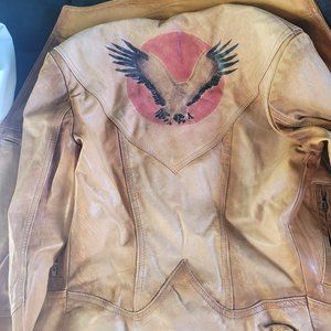 60s/70s vintage red sun and eagle "leather ranch" genuine leather coat