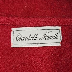 Rich Red Buttonup Long Sleeve Jacket Overcoat with red Buttons and deep Side Pockets, by Elizabeth Nemeth.