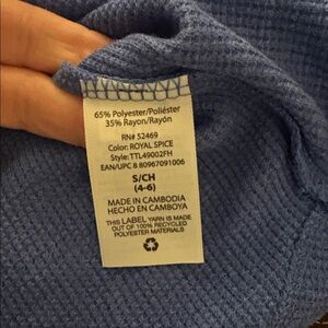 Brand New with tags. **It's wrinkled from being in a storage tote.** Color is royal spice. Very pretty! Semi fitted. Polyester & rayon blend.