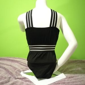 New without tags one piece black striped illusion swimsuit in Size S. Unique and gorgeous! This is similar to the Kenneth Cole Reaction swimsuit, but doesn't have padded cups.