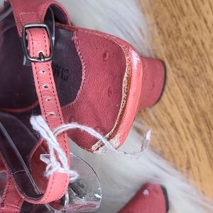 Pink textured leather like heels. Have scraps and back right heel has some damage, see pics!