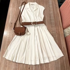 Fresh from the cleaners! White sleeveless PRADA dress. Button up with pleats. Has 2 hidden pockets!! No stains & smoke free home.