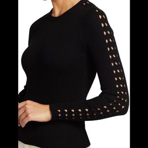 This Hazel top from Jonathan Simkhai is defined by a slimming rib-knit veneer and delicate cutouts on the sleeves. Elegant and feminine, this piece will certainly elevate your style game.