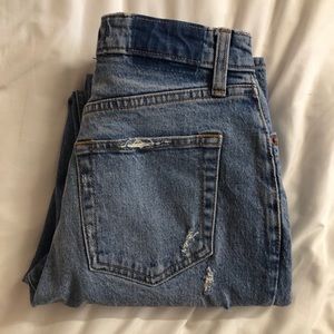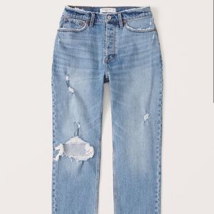 • tags: light wash distressed straight mom ripped jean denim high rise ultra waist waisted medium