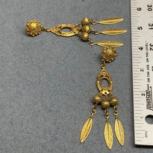 Retro style, goldtone detailed statement earrings with feather shaped dangles! #GoldFeatherEarrings #GoldStatementEarrings #GoldFeatherDangleEarrings #FeatherDangleEarrings #FeatherEarrings #FeatherStatementEarrings Please check out my other listings for more fabulous jewelry & a lot of other fun stuff. Add #DenisesPieces to your search for more of my items!
