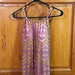 Prana Small Avore Dress; faded magenta, pink, mustard/orange colors; dropped waist; built in bra; stretchy & comfy; casual but very pretty