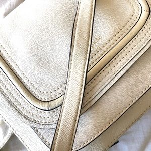 Very good condition. Small markings inside purse, and some yellowing along edge of purse exterior. Very sturdy still, the top of the strap is a bit creased/bent from being hung up for so long.
