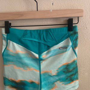 Cute blue and orange tie-dye running shorts from The North Face. They have a back pocket for keys or lip balm. They do have a few snags in the front, see last picture right above my fingernails. These shorts are pre-loved but still have a lot of life left in them.