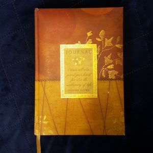 Pretty gold, yellow and orange toned cover journal. Lined pages and has nice divider sections. Many pages have Bible quotes printed on them. Also has a gold ribbon to keep your place. The only flaw is the opening page where I marked out the name written there. In perfect condition otherwise.