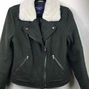 American Eagle Wool Faux Fur Trim Moto Jacket Coat