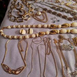 Coro, Lisner, Monet, Napier, Avon, Cookie Lee, Trifari, Korea, Gerry's, Lia Sophia, Lci, BR, Express, genuine pearl sterling silver earrings, Gold Fill, beaded 925 earrings, cz ring, cz and amethyst earrings, diamond chip ring, genuine crystal, cameo cuff bracelet, jewelry sets, brooches, pins, lockets, necklaces, clip on earrings, pierced earrings, bracelets, sweater guard, and more! There are several of the same brands in this lot for example, 3 Monet, 4 Avon, 2 Napier ect Seriously beautiful!