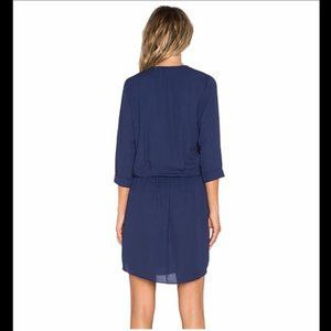 Celine faux wrap with lace inserts dress in midnight, a beautiful navy blue, from Heartloom
