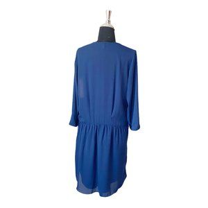 Heartloon Celine Blue Faux Wrap Lace Panel Dress