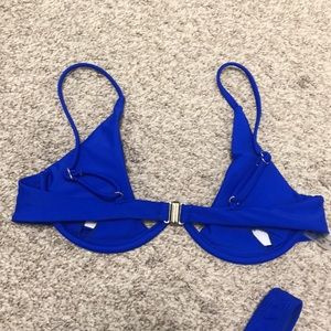 SHEIN spaghetti strap, underwired, high cut bikini swimsuit. Top has adjustable straps, removable cups, and clasp clusters. Royal blue color. Size small. Never worn.