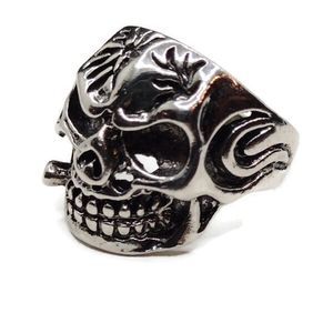 STAINLESS STEEL "BITE THE BULLET SKULL RING"