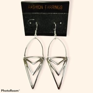It's a pair of silver earrings with an upside down triangle, and looks like to hearts cut iut underneath that. If you look at it straight on looks like an ice cream cone. Comes with fish back hooks.