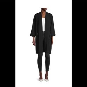 With clean lines and a simplistic cut, this topper jacket is kimono inspired.