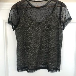 π¦SALE Floral Print Polkadot Mesh Top great under cardigan