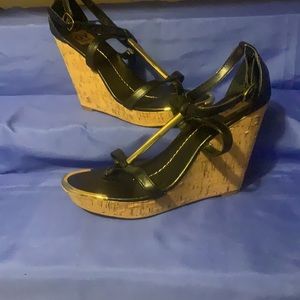 Dolce Vita~Sz 8.5 black wedge sandals with gold accents. Never worn, new w/o the box.