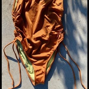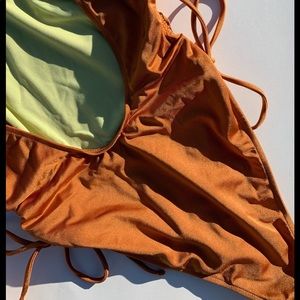 #palomawool #ochre #onepiece #swimsuit #rust orange lime green high french cut cyberpunk punk goth oseree grunge minimal minimalist summer swim designer ganni lisa says gah sustainable fashion runway recycle beach ocean paloma wool bagheria shimmer