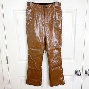Anthropologie Greylin Brown Vegan Leather Cropped Pants, Straight Leg, Slight boot cut