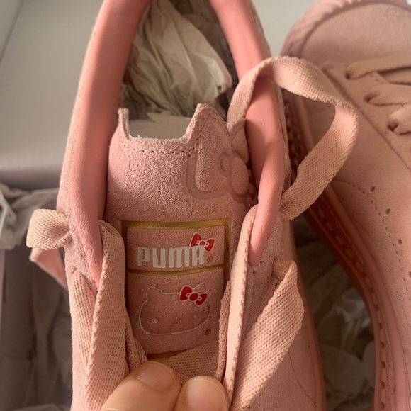 BNIB PUMA x HELLO KITTY Utility Trainers 🔹 Brand new never worn, bought from Puma US 🔹 100% authentic, proof available 🔹 Size 5.5 / 35.5 to fit between 35 to 36 🔹 Leather outer and lining, rubber sole sneaker 🔹 Super rare 🔹 Measurements available Note: I have fluffy cats so a hair or two may make it onto your item despite my absolute best efforts to de-fluff. Please keep in mind if allergic